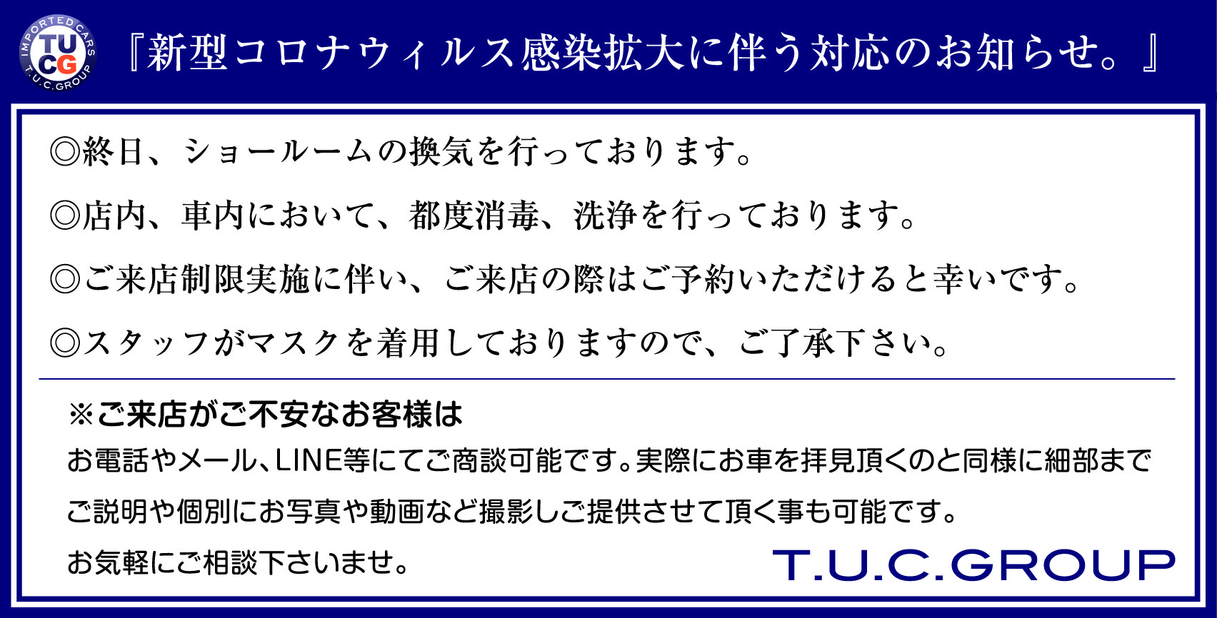 TUCグループは当面の間、18時までの短縮営業が続きます。